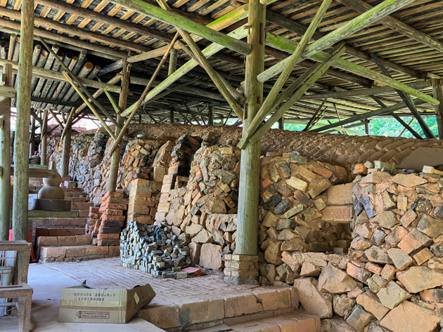 登窯は中国では龍窯と呼ばれ、山の斜面などの傾斜地に沿って築かれる、細長い構造の窯です。窯全体がスロープ状になっており、下から上へと連なる構造を持っています。登窯では複数の焚口が設けられており、下部から順に薪を投入しながら焼成を進めていきます。これにより、火と熱が段階的に上方へ移動し、窯全体の温度をコントロールします。